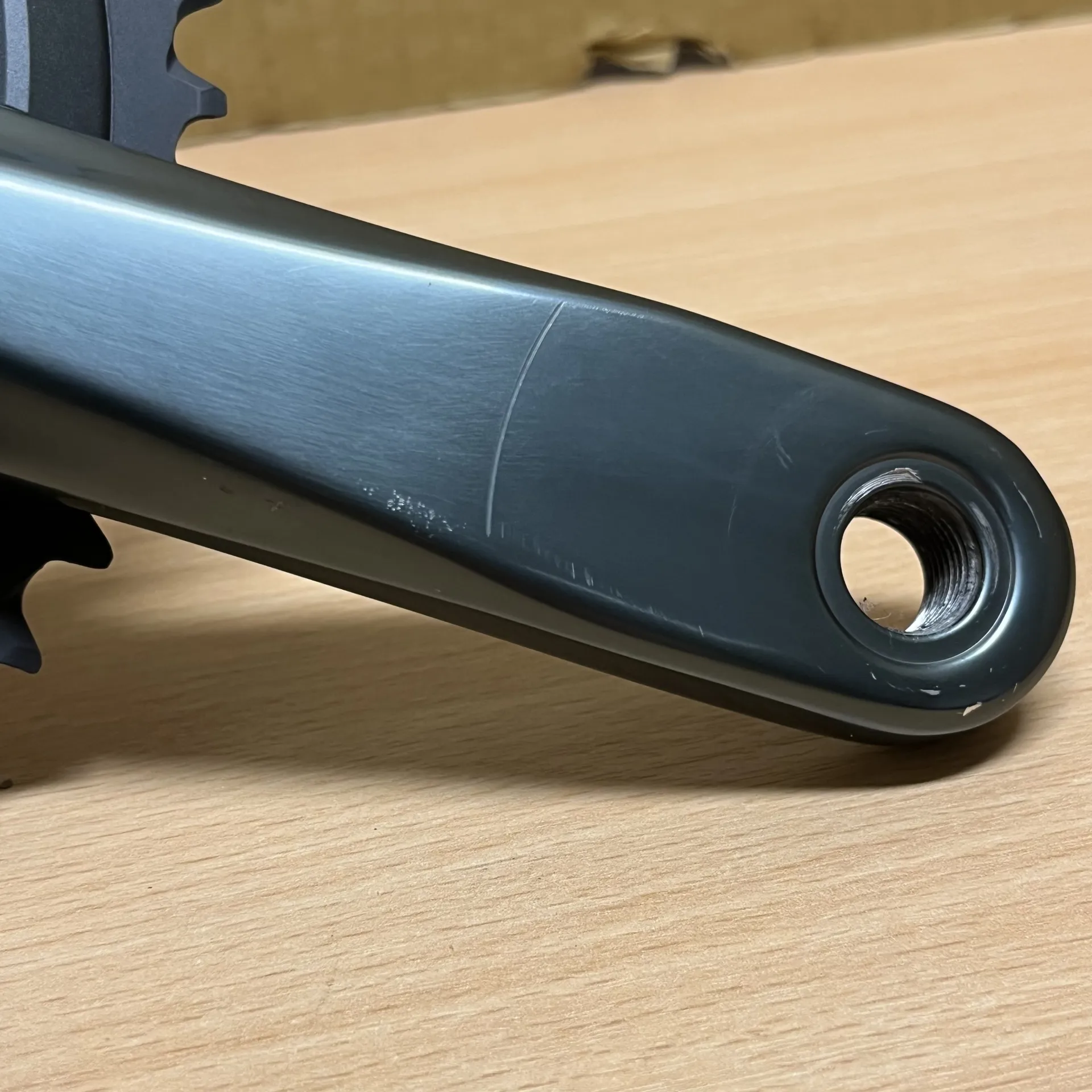 The chainset is unridden, but it has been fitted to a bike and removed. As a result, it shows cosmetic marks, including marks where pedals have been installed and a visible scratch on the right-hand crank arm from a pedal spanner. These marks are purely cosmetic and do not affect performance or function. Original retail packaging is not included.