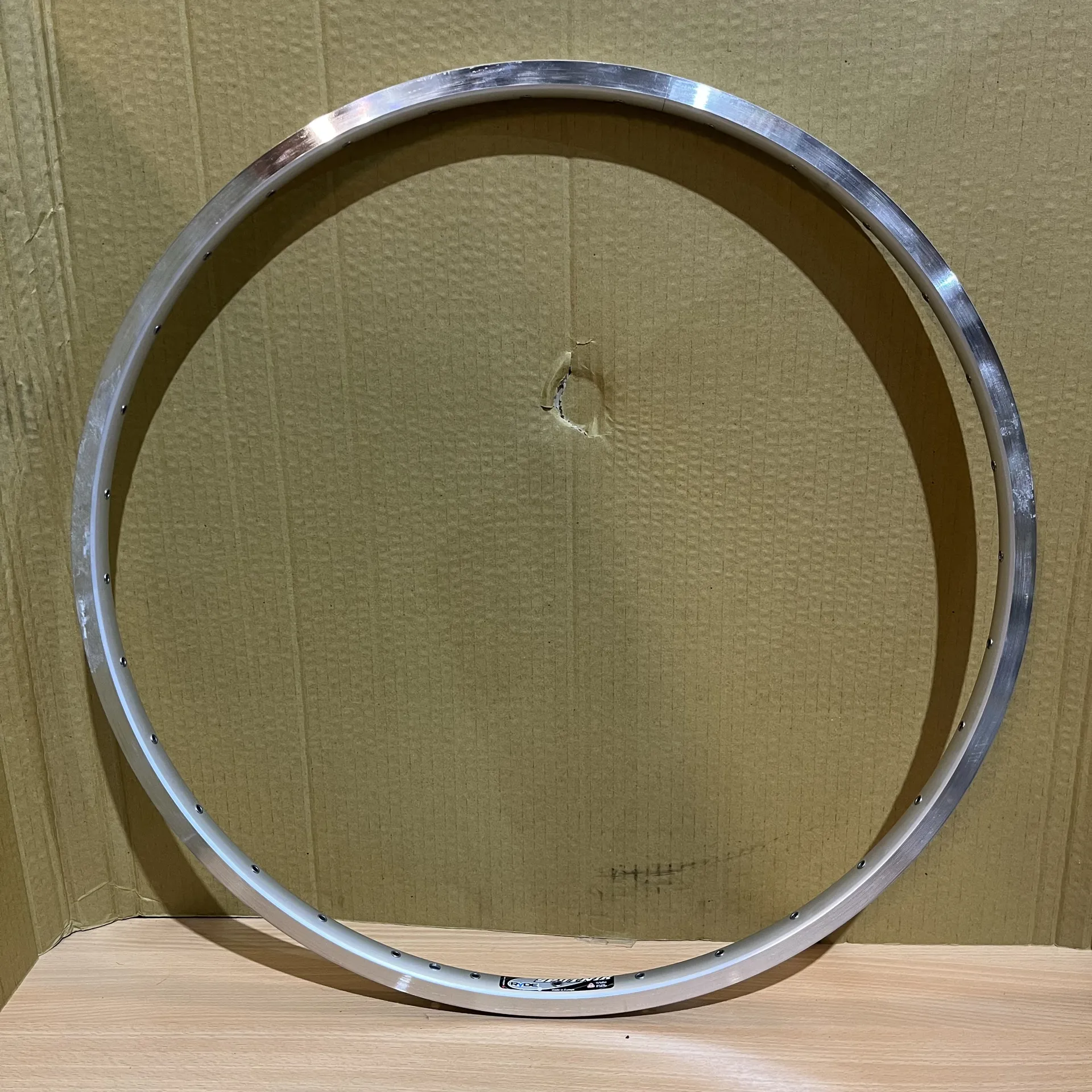 This rim is new old stockand has never been built into a wheel. Please note it may show minor cosmetic marks or light scuffs from storage, which do not affect performance.
